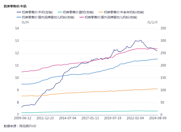 据证券日报报道,多个地区的奶牛养殖企业均面临着原奶价格下跌、原奶动销不畅的现状。据国家奶牛产业技术体系首席科学家李胜利透露,2024年以来,牛奶原奶过剩的情况较2023年更为严重,导致其收购价持续下跌,使得奶价和成本出现了国家奶牛体系有记录以来的首次倒挂。多位业内分析师表示,乳品消费市场疲弱、原奶供应过剩、供需平衡被打破是导致近段时间原奶价格持续下行的主要原因。另有分析师认为,压缩产能、调整奶源供需配比、提振乳制品消费或为破局之道。