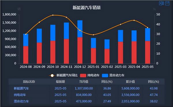 6月21日,据中汽协消息,2025年6月18-21日,由中国汽车工业协会组织的“2025汽车工业统计工作会议”在陕西西安召开。中国汽车工业协会副秘书长陈士华介绍,今年前五个月,汽车产销均实现10%以上增长,其中内需市场在政策拉动下,明显改善,起到较好支撑作用;整车出口尽管面临国际形势不确定性加大挑战,仍呈现出较好韧性,保持稳定增长。新能源汽车延续快速增长态势,前五个月新能源乘用车国内销量占比超50%、新能源商用车国内销量占比超20%。