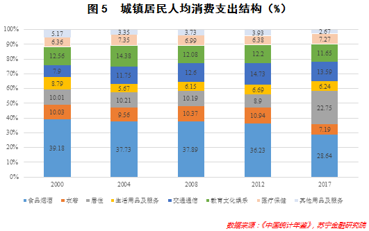 虽说上述数据佐证了我国居民消费的升级,但仍然有几个指标的变化情况需要正视: