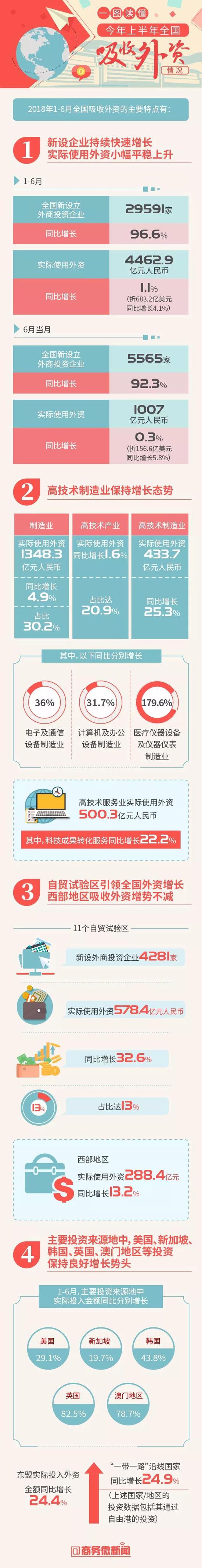 一图读懂 | 2018年上半年全国吸收外资情况