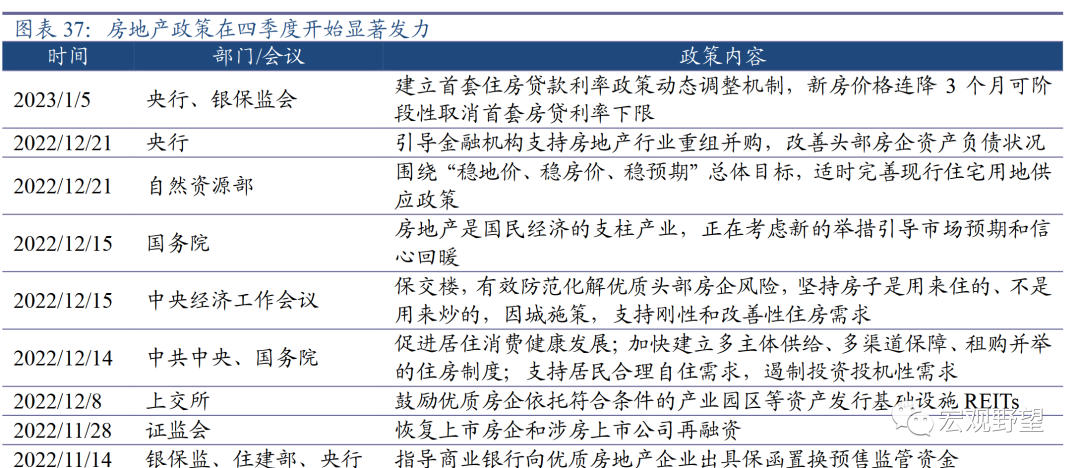 3.3. 政策预计前松后紧我们认为2023年政策的节奏可能是“前松后紧”。“前松”是较为确定性的趋势。从经济基本面上来看,目前中国正在受到出口快速下滑和第一波疫情的双重冲击,内需亟待接棒外需来稳定经济增速,客观上需要政策继续发力来支持经济。从政策导向上来看,中央经济工作会议指出“继续实施积极的财政政策和稳健的货币政策,加大宏观政策调控力度”,主观上奠定了未来一段时间内宏观政策继续加码的基调。所以我们认为上半年宏观政策仍将保持宽松。“后紧”有一定不确定性。如果一季度的疫情冲击过后,二季度经济恢复状况较好,则政策有可能会在年中左右转向。如果经济复苏持续发力则政策宽松时间会相应延长。回顾近年来施政节奏可以看出,中国政策制定者对于宽松的力度还是较为谨慎的。比如2018年年末确立了“稳增长”的基调,但在2019年一季度经济复苏超预期之后,政策很快在4月份的政治局会议中边际收紧。2020年一季度受到了首轮疫情的冲击,但在二季度经济复苏之后,三季度就提出“三道红线”,国常会“预告”的降准也未落地,政策边际转向收紧。可见在经济趋势出现较为明确的向好趋势之后,政策导向的变化可能会较快发生。中央经济工作会议中重新提出“广义货币供应量和社会融资规模增速同名义经济增速基本匹配”,在2022年经济向下、货币供给增速向上的格局下,二者显然是不匹配的,货币超发较多。所以2023年货币供给增速将整体上向下回归。总而言之,如果二季度中国经济能够出现较好的复苏趋势,则年中可能是政策转向的时点。