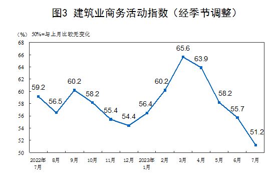 7月份,非制造业商务活动指数为51.5%,比上月下降1.7个百分点,仍高于临界点,非制造业继续保持扩张。