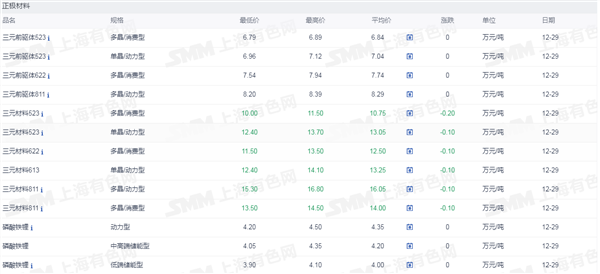 正极材料价格