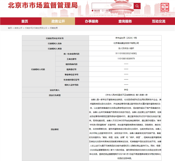 具体来看,北京福纳康在其经营场所通过展示标题为“牵手中科院 领航富勒烯”的宣传册,突出宣传富勒烯具有抗衰美白、防脱育发、美白祛斑、白发转黑等功效。然而,公司备案的洗发护发类产品功效宣称为“清洁、保湿、控油、去屑”和“修护、保湿”,与其实际宣传的功效严重不符。此外,北京福纳康也未对其备案产品的相关功效进行验证,进一步证实了其虚假宣传的行为。