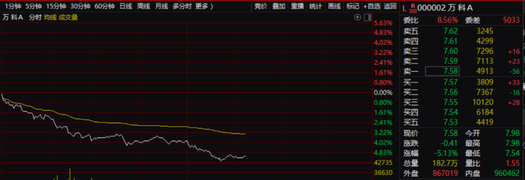 这引发了万科股价大跌,与此同时,万科境内债午后集体走低,“20万科08”“20万科04”均跌超4%,“20万科06”“22万科06”“21万科04”跌超3%。